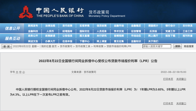 8? 22? ?? 9? 15?, ??????? ???????????? ??? ??? 2022? 8? 22? ??????(LPR)? 1? ?? LPR? 3.65%, 5? ?? LPR? 4.3%?? ????. ??? LPR? ?? LPR ????? ????. 1? ?? LPR? ???? 5%??? ???? 5? ?? ?? LPR? ???? 15%??? ????.